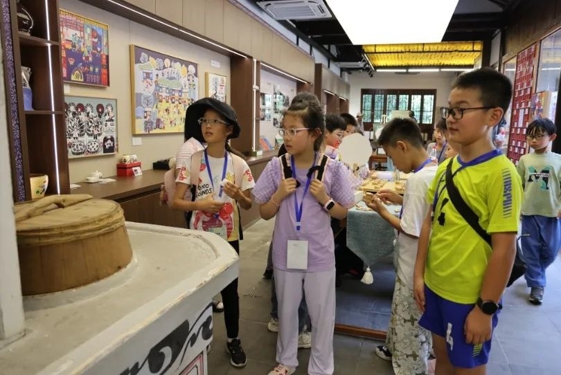在开展培训的同时,夏令营还安排了采风活动,让孩子们实地参观枫泾古镇、中国农民画村等,现场聆听历史文化故事,体验非遗文化。此外,纳凉晚会和采摘水果等特色活动也给孩子们留下了深刻的印象,为他们积累了创作故事的素材。