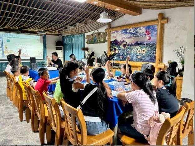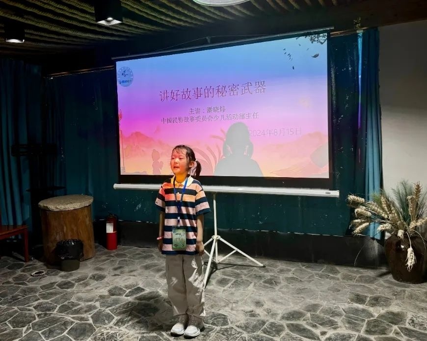 8月15日下午,走进“中国故事村”新义村,一堂夏令营故事讲演培训课正在火热进行。中国民协故事委员会少儿部主任潘晓炜正在和孩子们分享有趣的小故事,并介绍讲好故事的“秘密武器”,通过设置不同的情景,邀请孩子们大胆创作并讲出属于自己的故事。现场气氛活跃,互动性强。