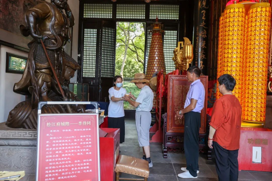 为了让更多的年轻一代和小朋友们加深了解英雄事迹,今天上午,上海方塔园还开展了一场以“纪念民族英雄李待问,非遗雕版拓印”为主题的亲子体验活动。工作人员以讲故事和问答等互动形式为孩子们讲述了民族英雄李待问的事迹,并教其如何制作雕版拓印。活动结束后,现场工作人员向亲子家庭分发了豆浆和油条。