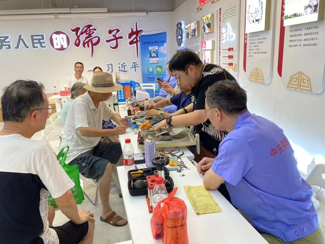 现场还邀请品牌家电维修企业为居民提供电饭煲、微波炉、电风扇、电水壶、电子钟、收音机等各类小家电维修服务。工作人员在“家电服务进社区”室外服务点对居民报修的项目逐一登记后开展现场电器维修,对居民提出的问题进行解答,并向居民提供电子产品选购与使用方法指导以及不易移动电器的上门维修服务。