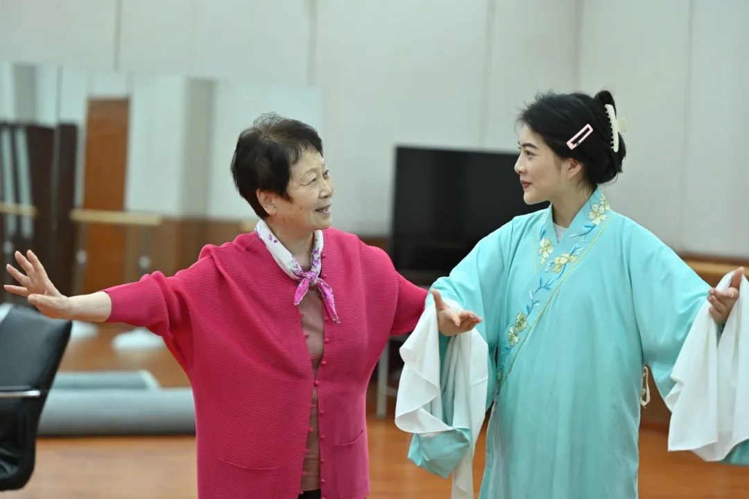在本次集训期间,沪剧小戏《情探·探情》邀请到非物质文化遗产项目昆曲的代表性传承人、著名昆剧表演艺术家岳美缇,以及青年昆剧表演艺术家、梅花表演奖得主罗晨雪,为青年演员们提供排戏指导。