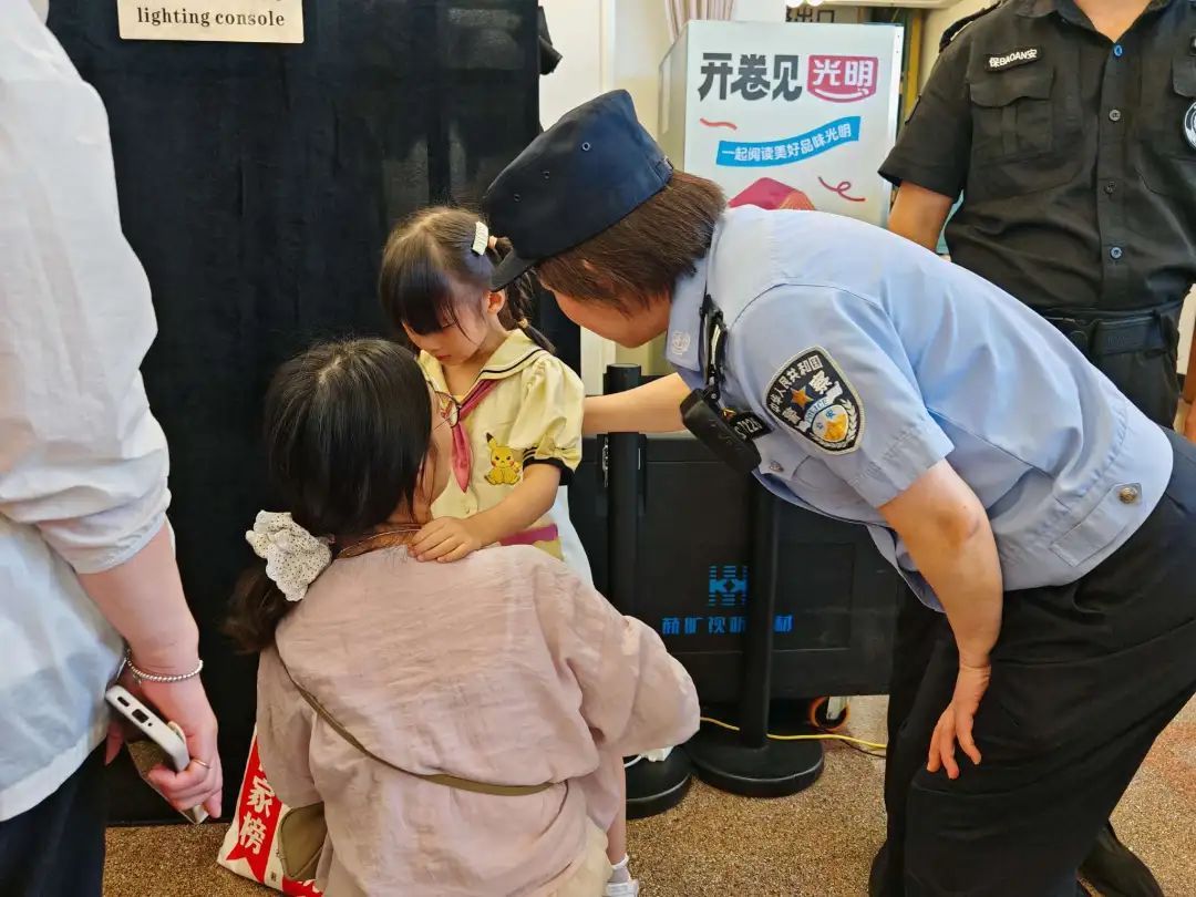 8月17日晚上7点半,治安支队民警毛雪莲、吕顺在展览中心上海书展执勤保障时,就遇到了群众求助称6岁女儿在馆内走失。在了解情况后,民警分头帮助寻找,在现场保安的协助下,在馆内中央大厅一角将小女孩找到,女孩妈妈现场为民警点赞。