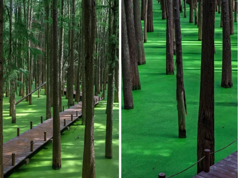 夏日炎炎,何处觅清凉? 逃离城市的热浪 不如来一场说走就走的 “水上绿洲”探险吧! 申城周边地区隐藏着几处 绝美的“水上森林公园” 它们不仅是自然的空调房 更是心灵的避暑胜地 今天,就让我们一起揭开 它们的神秘面纱 开启一场别开生面的避暑之旅! 夏日踏入江苏金湖水上森林公园,仿佛进入了一个绿色的梦幻世界。这里拥有万亩水杉林,林间水道纵横交错,乘坐小船穿梭其间,感受水波不兴的宁静与清凉。夏日阳光透过树梢,洒下斑驳光影,每一口呼吸都是满满的负氧离子,让人心旷神怡。 地址:江苏省淮安市金湖县银涂镇唐港