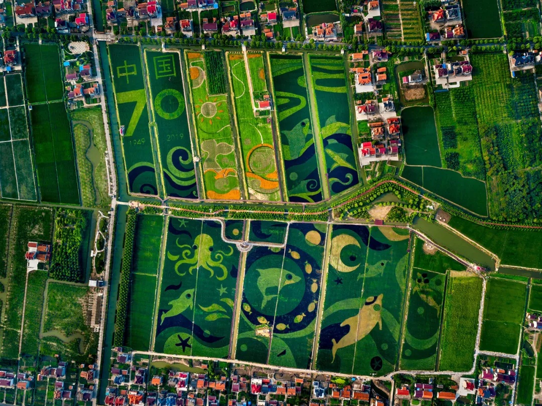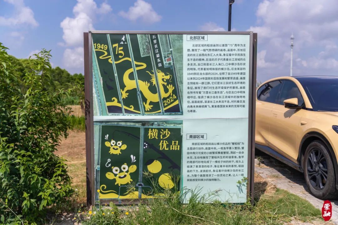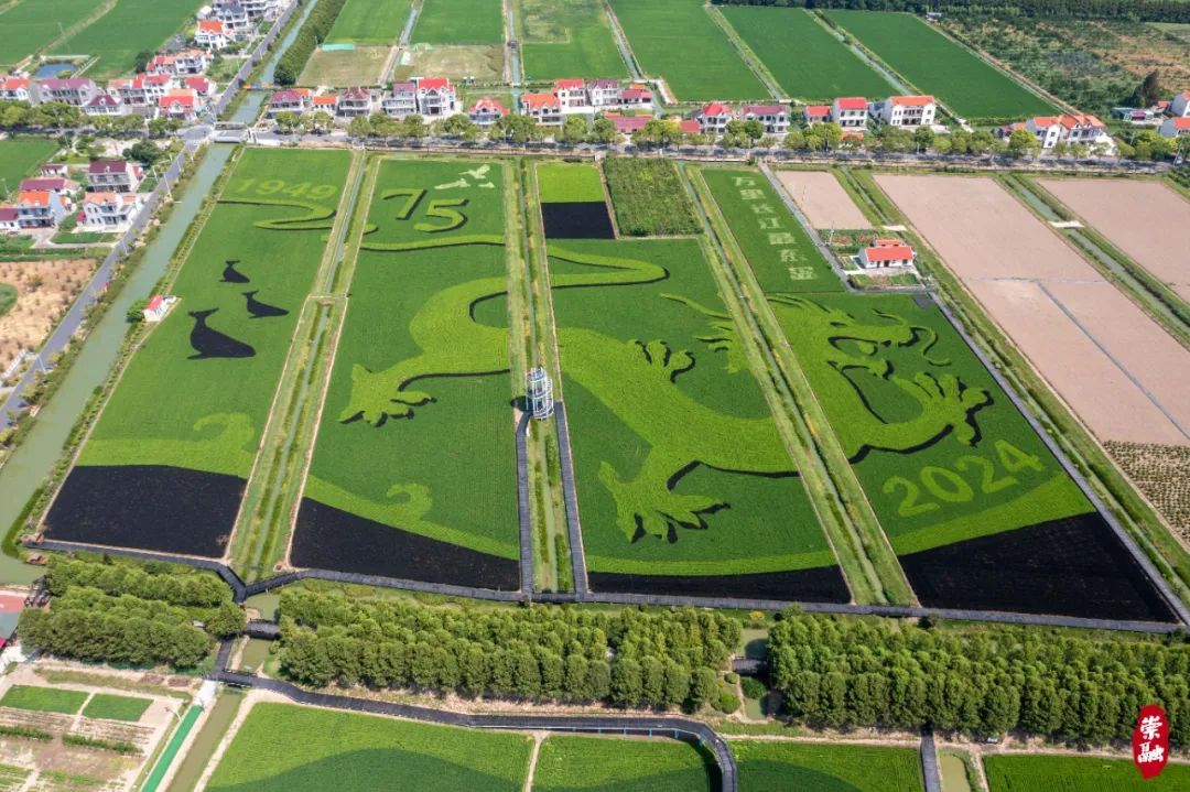 记者了解到,横沙乡今年的稻田画依旧把南北两个区域分开设计,南部区域稻田画以横沙优品“蟹稻桔”为主题创作,北部区域则以中华人民共和国成立75周年为主题。稻田画利用色彩及三维等方式打造,融入了地方特色、红色文化以及儿童元素。
