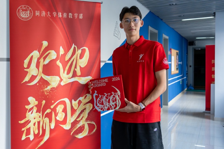 一同在体育教学部与班级同学们合影留念的还有徐卓一。作为中国跨栏新星的徐卓一与刘翔师出同门,在巴黎奥运会男子110米栏预赛中以小组第一的成绩晋级半决赛,被网友笑称“戴着最斯文的眼镜,跨着最猛的栏”。和陈芋汐一样,徐卓一也给学校带来了巴黎奥运会纪念徽章。今年7月底,徐卓一曾在微博中晒出了自己的同济大学录取通知书。