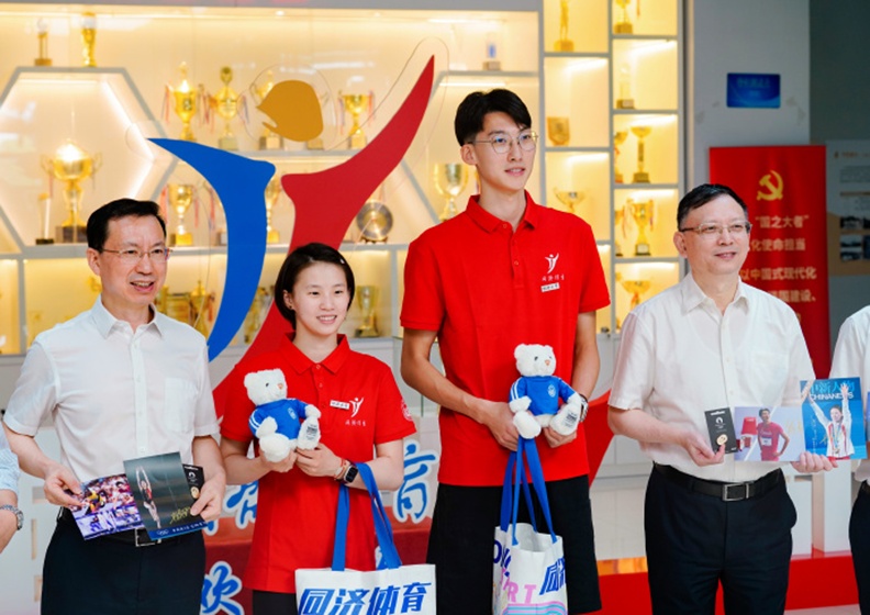 同济大学校长郑庆华为陈芋汐佩戴同济大学校徽,称赞她“顽强拼搏,为国争光、为同济争光”。同济大学党委书记方守恩祝贺徐卓一开始大学生活,并为他佩戴同济大学校徽,勉励徐卓一和陈芋汐在继续确保完成训练任务的同时,加强文化知识的学习,提升综合素质。