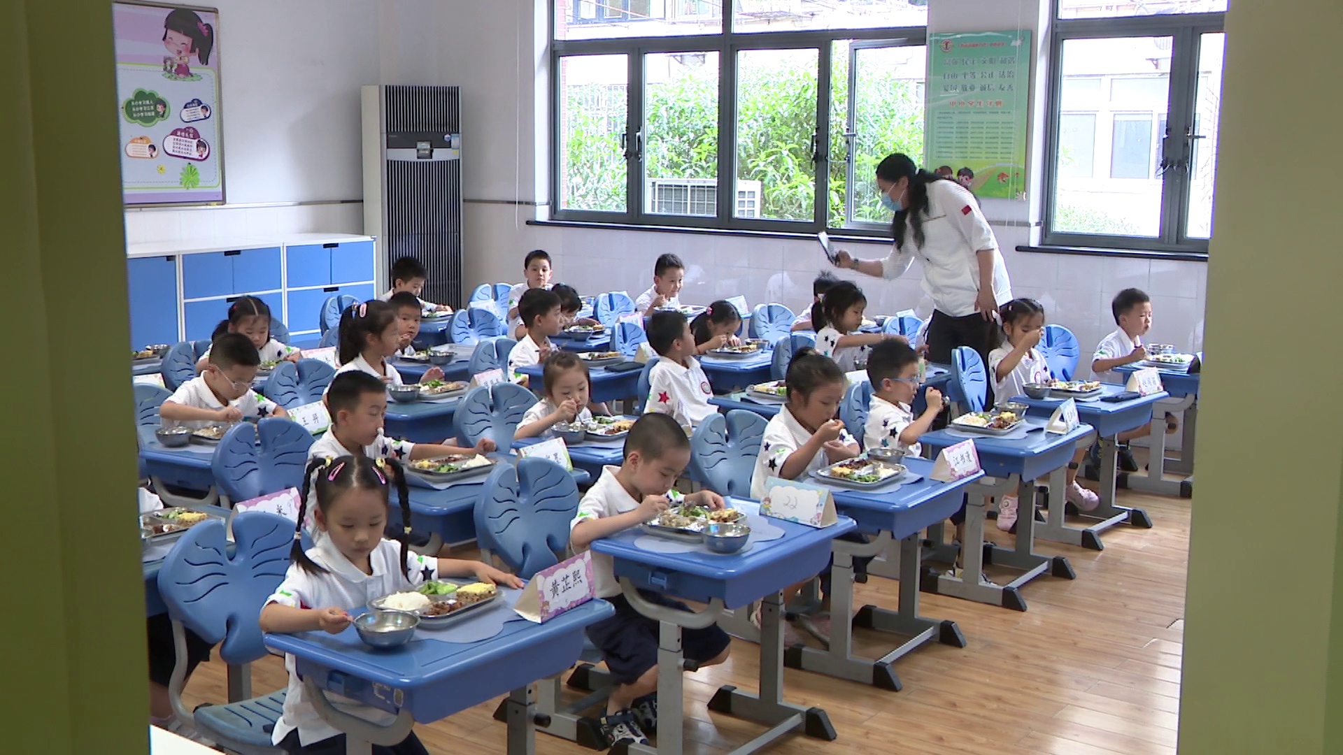 在三天的新生培训中,学校还每天定时对家长们开放,让家长们走进校园,了解学生的校园生活,这项安排也受到了家长们的欢迎。不少家长表示,“小朋友入学后作为家长内心非常焦虑,但这三天的观察来看,比预期好很多,小朋友的自理能力,包括吃饭、与同学的互动都让家长感到非常惊喜,而且小朋友回到家后特别强调了饭菜很可口,让我们家长感到很安心。”
