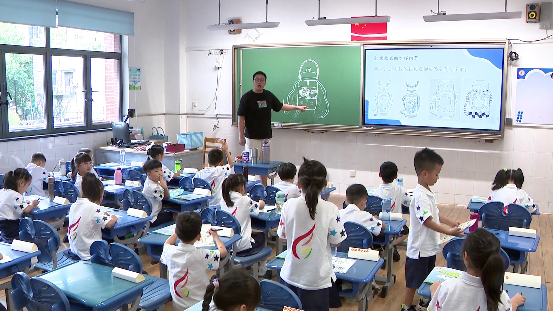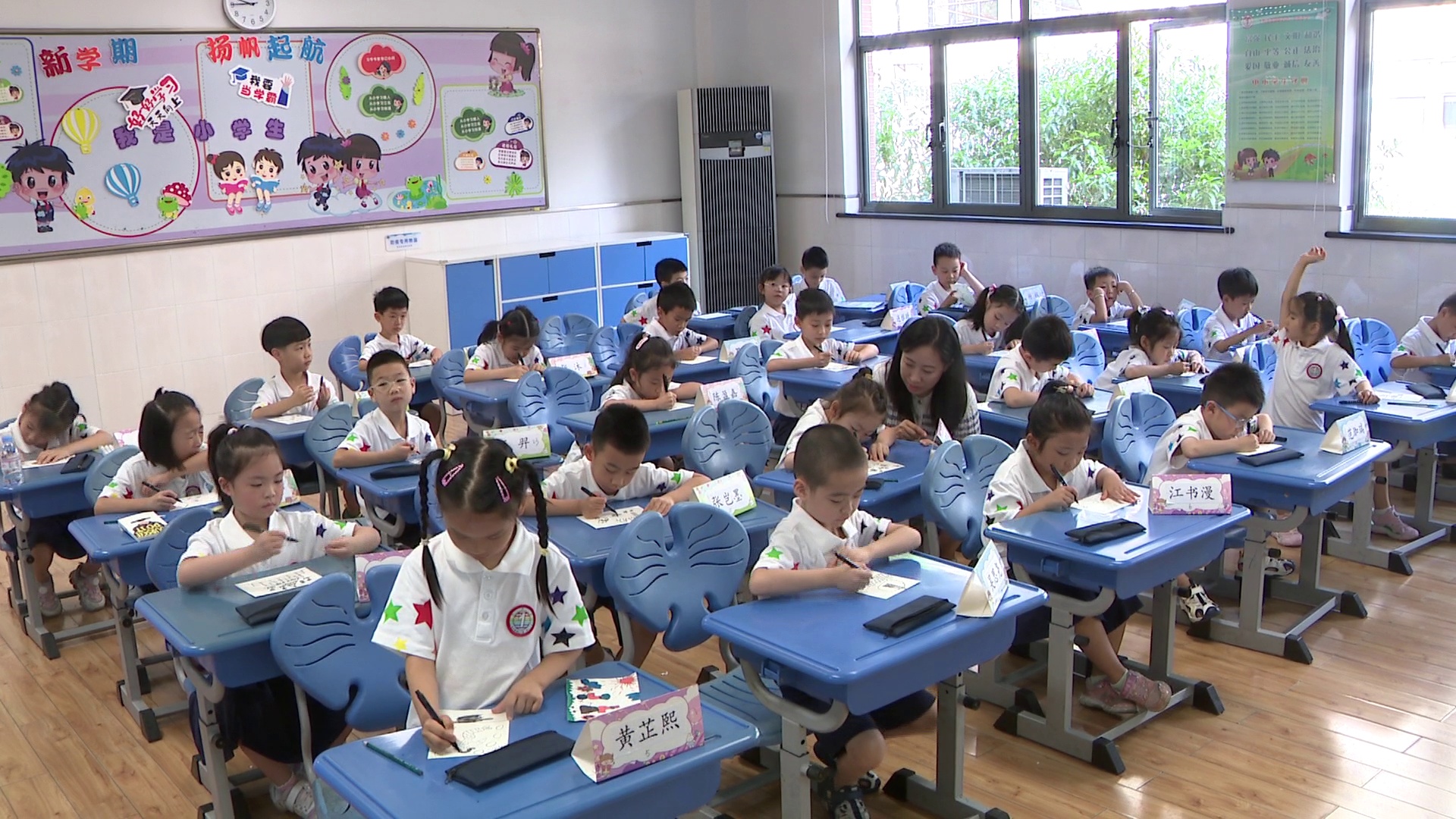 美术老师王老师告诉记者,自己在五年级任教已经有四年时间,这次接触一年级的小朋友觉得很有意思,和他们讲话与大孩子完全不同,他们的思维以及想法更加跳脱,自己对新学期也很期待。