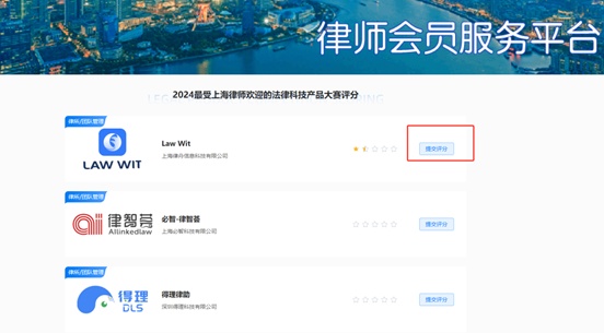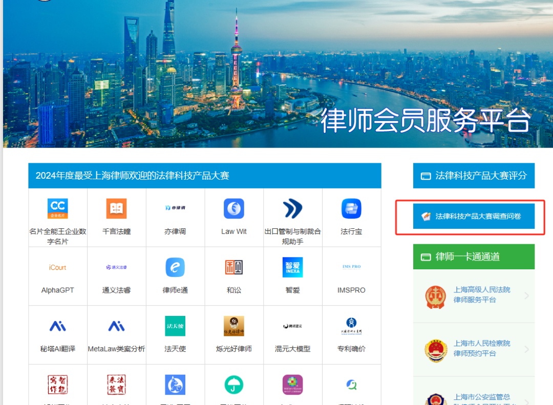 随着大赛步入尾声,我们热切期盼上海律师会员参加参赛产品的评分工作及调查问卷。您的专业见解将是评选奖项的关键依据,同时也是推动法律科技行业持续进步的重要动力。