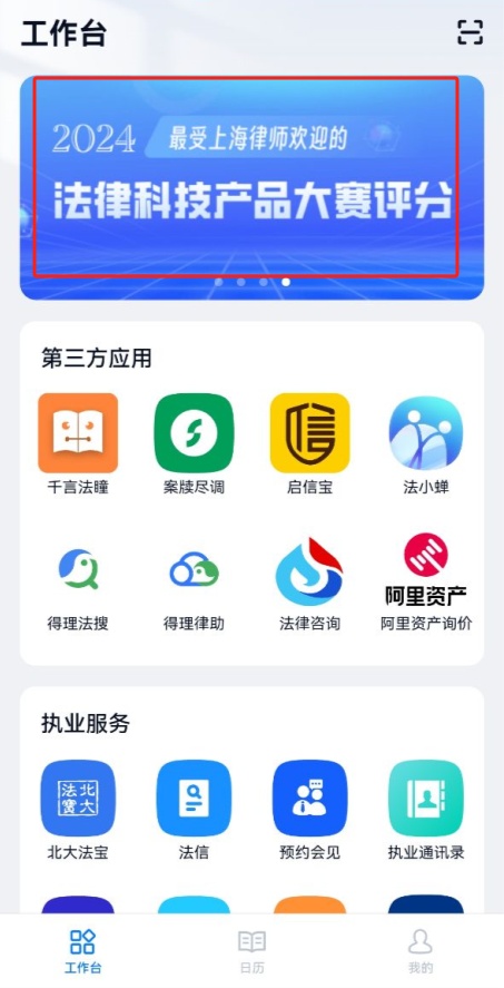 登录“上海律师”App,评分入口在顶部banner图,点击图片之后进入评分页面。