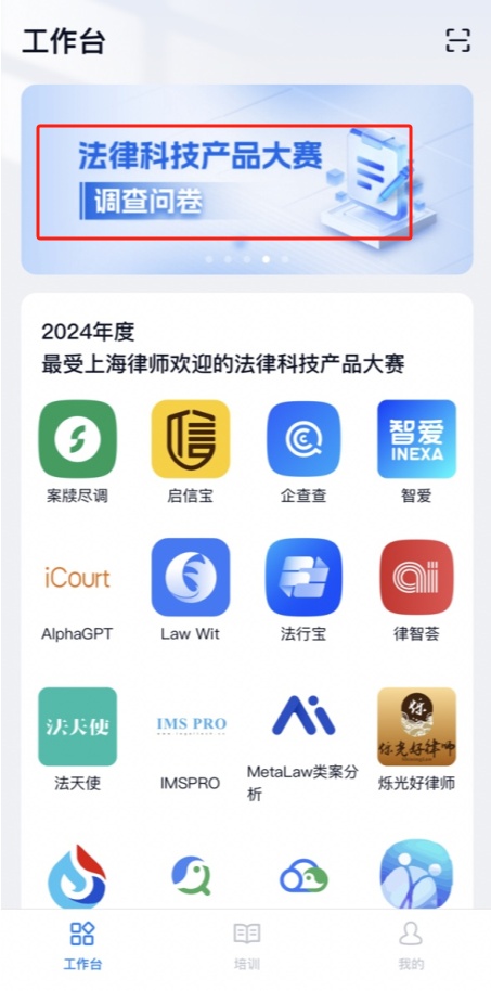 “2024年度最受上海律师欢迎的法律科技产品大赛”专门设计了调查问卷,以更好了解广大律师会员对法律科技产品的需求,帮助上海律协选择真正实用好用的法律科技产品供广大律师会员使用。
