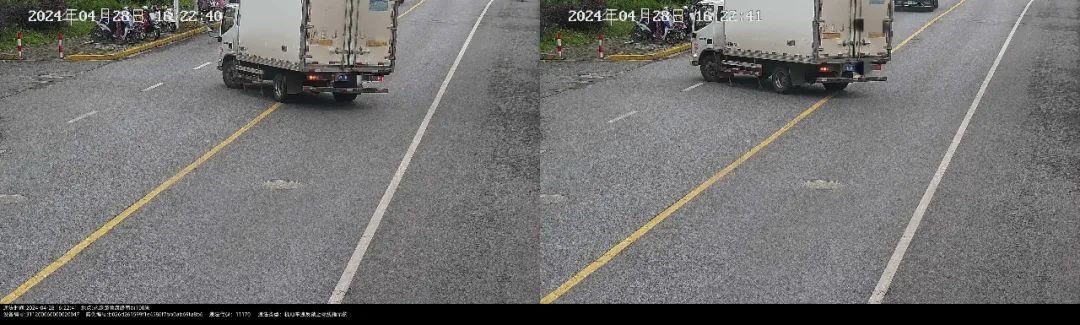 ▲2024年4月28日16时22分,号牌为沪EJU***的轻型厢式货车在永跃路鲁康路南约100米,实施了“机动车违反禁止标线指示的”违法行为。