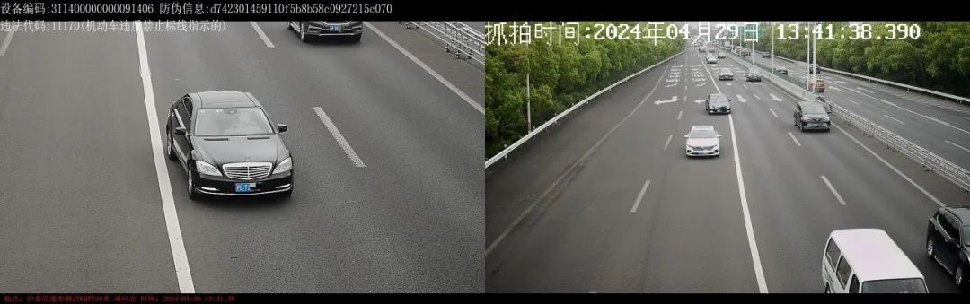 ▲2024年4月29日13时41分,号牌为沪LT2***的小型轿车在沪嘉高速东侧27KM30米,实施了“机动车违反禁止标线指示的”违法行为。