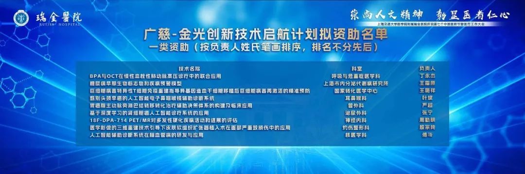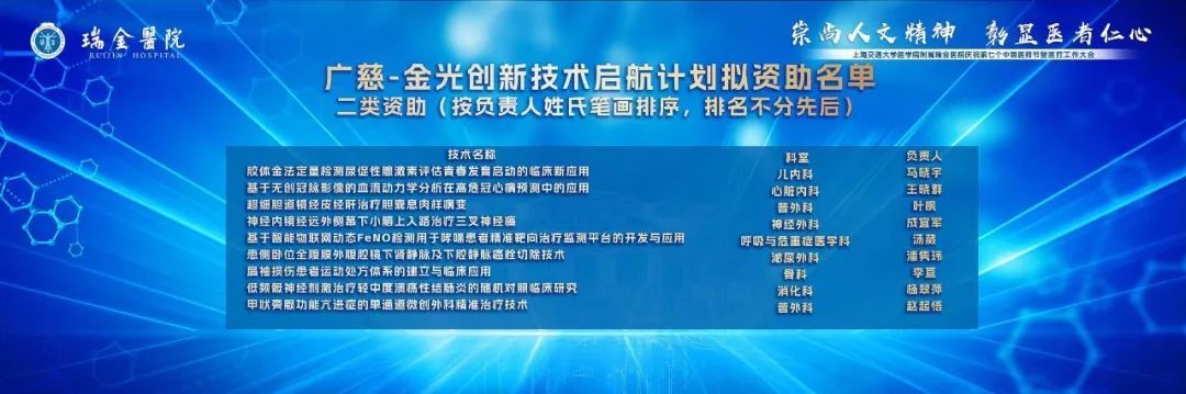 创新是医院发展的不竭动力,为鼓励临床技术创新,自2021年起,瑞金医院设立广慈临床新技术启航计划,在两年培育期内要求各项技术成熟地推广至临床应用中,是瑞金新技术培育的平台。