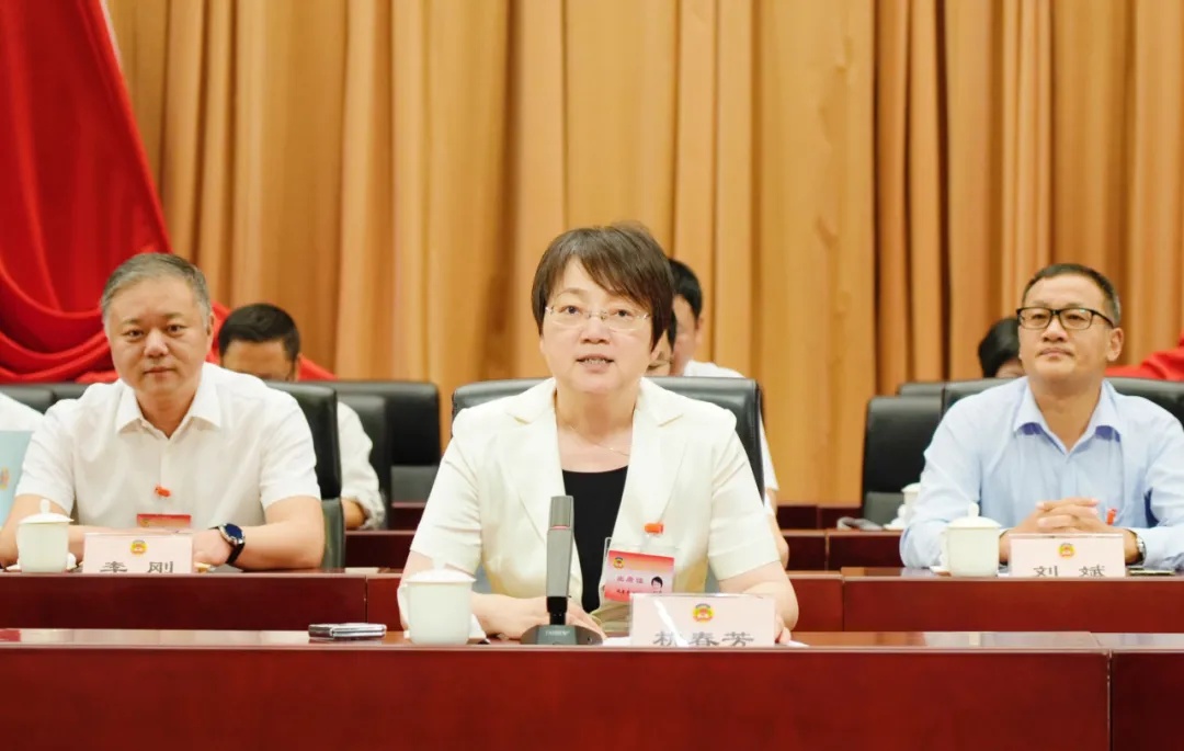 区政协主席杭春芳,副主席欧阳萍、翁华建、顾薇玲、柯政、徐仁彬,秘书长钱军梅在主席台就坐。杭春芳讲话,大会由欧阳萍主持。
