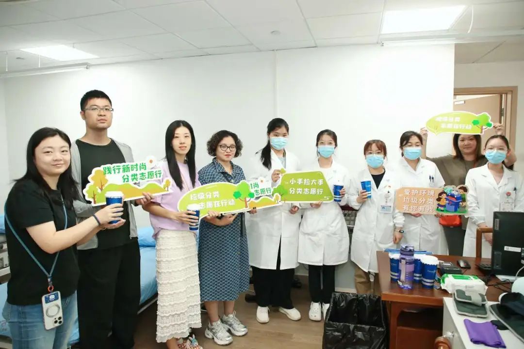 活动中,垃圾分类志愿者为静安区中医院的医务工作者和就医、办事的居民,讲解了垃圾分类的重要性及日常投放分类法,尤其是奶茶及奶茶外杯托的精细化分类。
