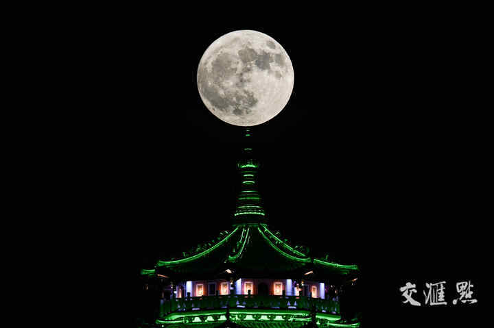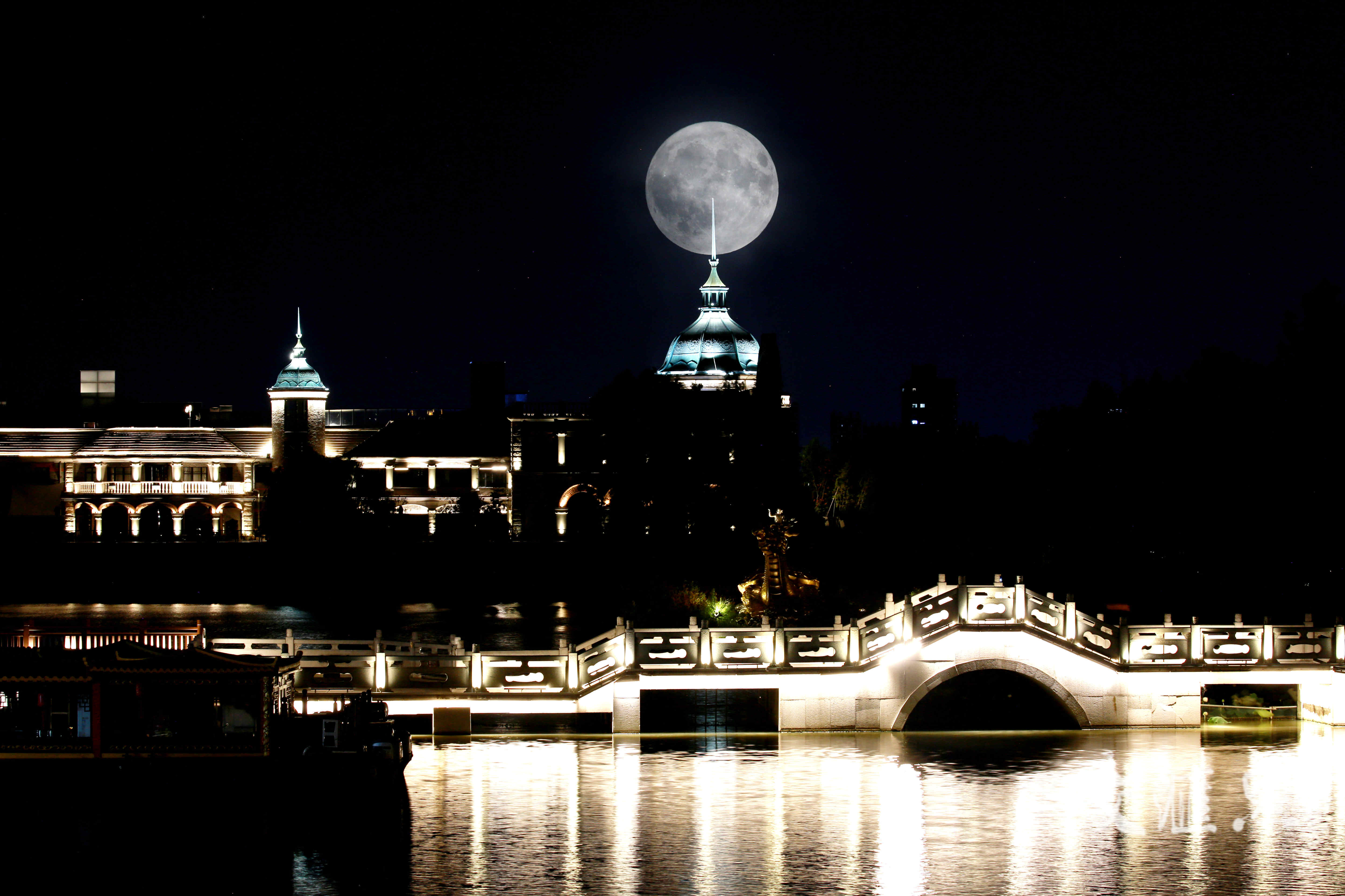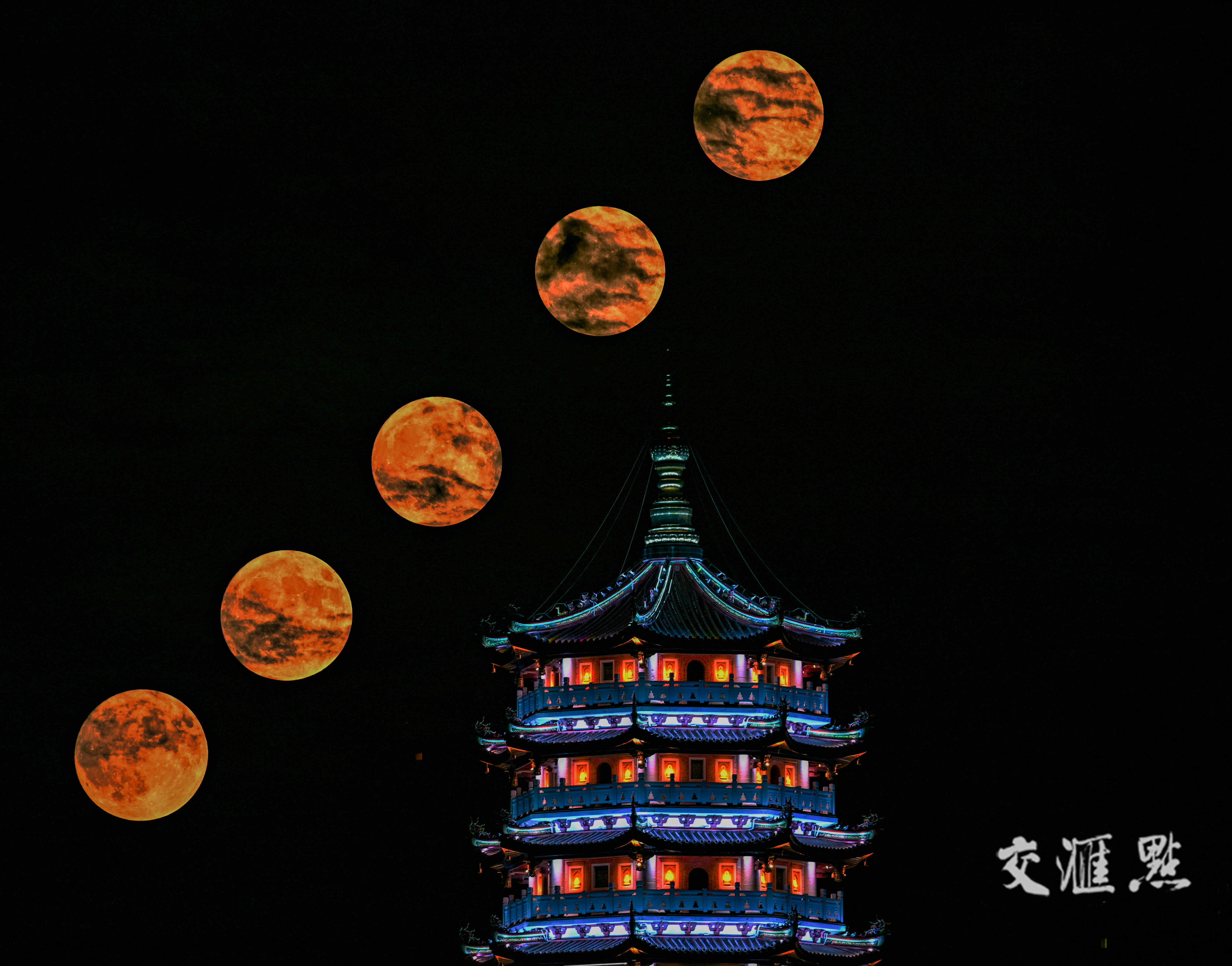 8月19日21时57分,南通市,“超级月亮”现身濠河(多重曝光)。宋诚林 摄 视觉江苏网供图