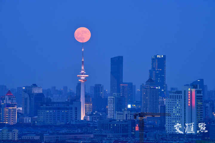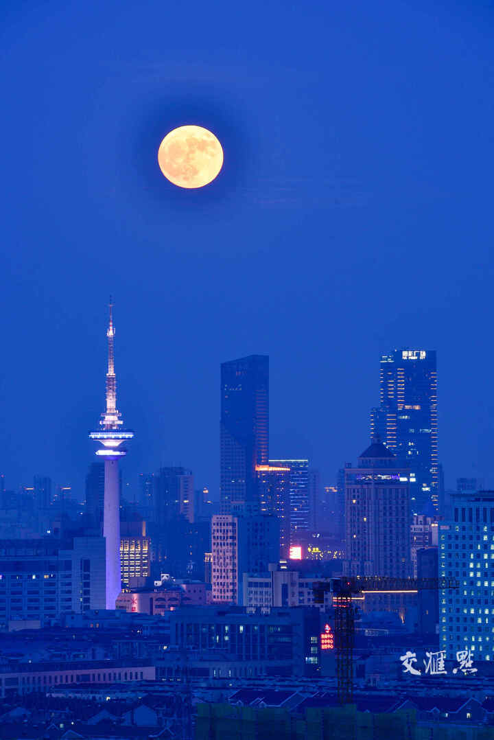 8月19日18时45分,南通,“超级月亮”现身城市上空。陈德军 摄 视觉江苏网供图