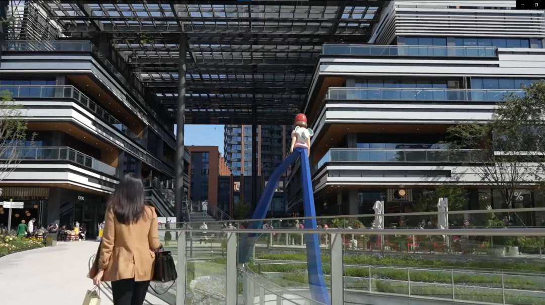 骑车来到万象天地——生态、人文、社交三合一的空间。建于百年前的妈祖庙天后宫,如今成为文旅新地标,戏台、T台灵活切换,演绎苏河魅力。