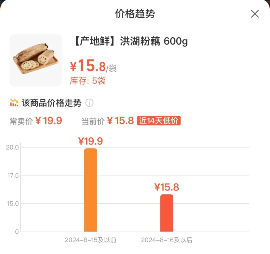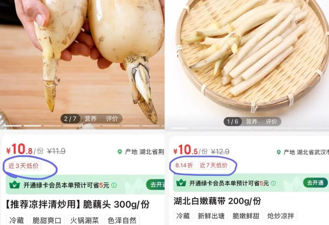 新藕刚上市的时候价格比较贵,价格在15元/斤。但这段时间价格就稍微稳定了,掉了一点,基本上徘徊在7-8元/斤左右。因为这段时间它是个过渡期,这段时间藕是相对嫩一点,再往后期的话藕就稍微偏老一点,它的价格会往下跌一点。