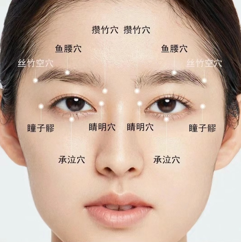 穴位按摩:眼周有很多穴位,可以按摩一下睛明穴、丝竹空、承泣穴、瞳子髎、太阳穴等穴位,加快血液循环,缓解眼疲劳、干涩等症状。