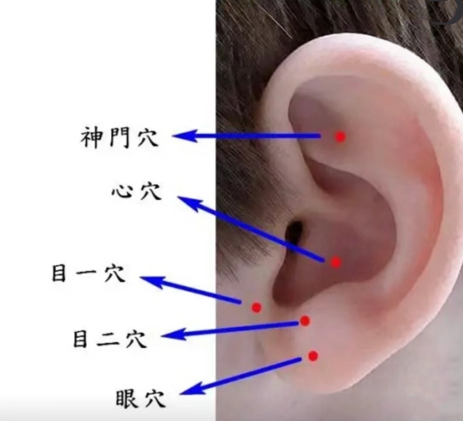 耳穴压豆疗法:选取眼、目、心、神门等耳穴,进行耳穴压豆治疗。用手指按压刺激上述穴位,通过经络传导,达到清心安神、活血明目,调整机体平衡,缓解视疲劳。