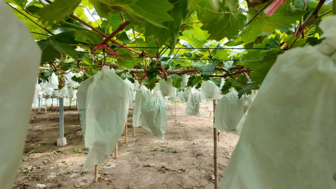走进南渚生态庄园,记者在大棚内看到,所有葡萄都被套上了一层“外衣”,现在农药打得少了,为了防止病虫害,因此都给葡萄套了层纸,虽然相比之前工序繁琐但是种出来的葡萄吃起来也更安心。近期天气炎热,除了日常的照料工作,还需要定时喷灌、淋水,做好防旱工作,保证果子不会受天气影响导致减产。
