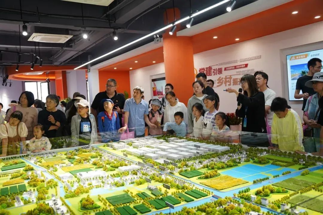 进入乡村振兴展示厅,同学们通过视频、沙盘等了解五四村的村情、历史、现在的发展及未来的规划,也看到了藏红花、紫叶稻、红花酿、思贤大米等五四村特色农产品。