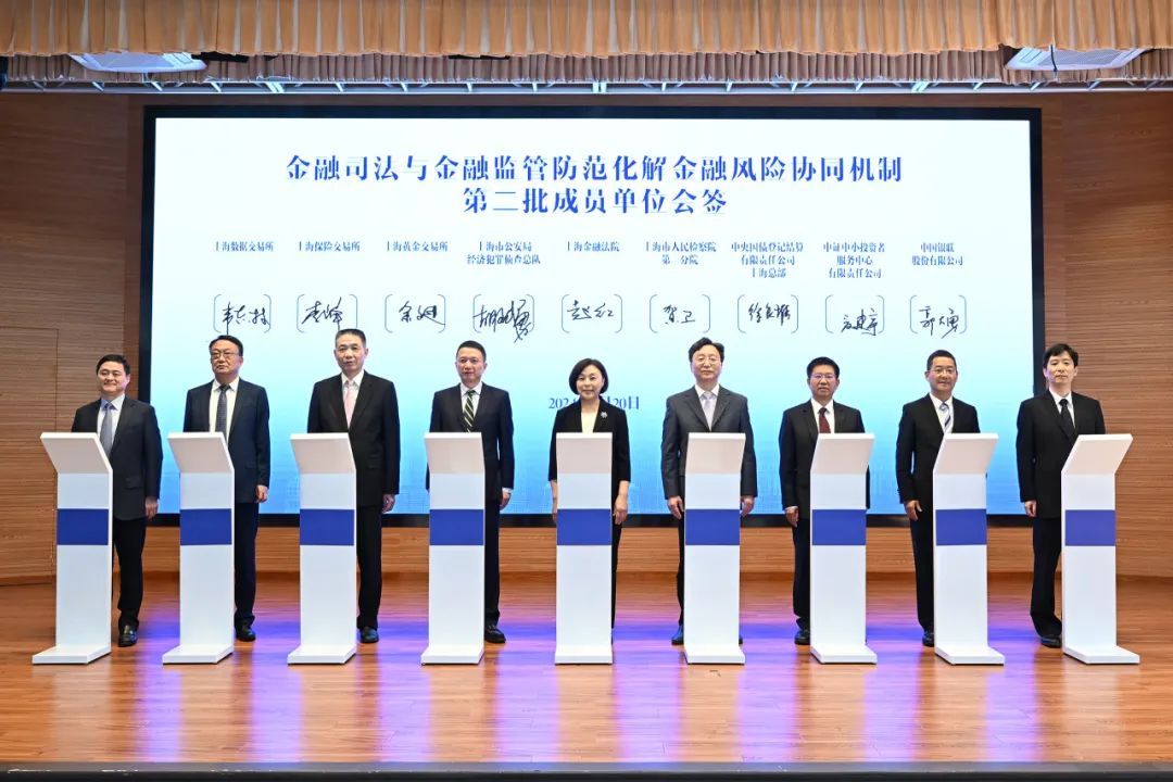 会上,第二批协同成员单位共同签署了《金融司法与金融监管防范化解金融风险协同机制规则》,目前公安、检察、审判、监管、自律管理“五位一体”的协同体系初步建立,协同“朋友圈”的多元化、系统性和标识度进一步提升。