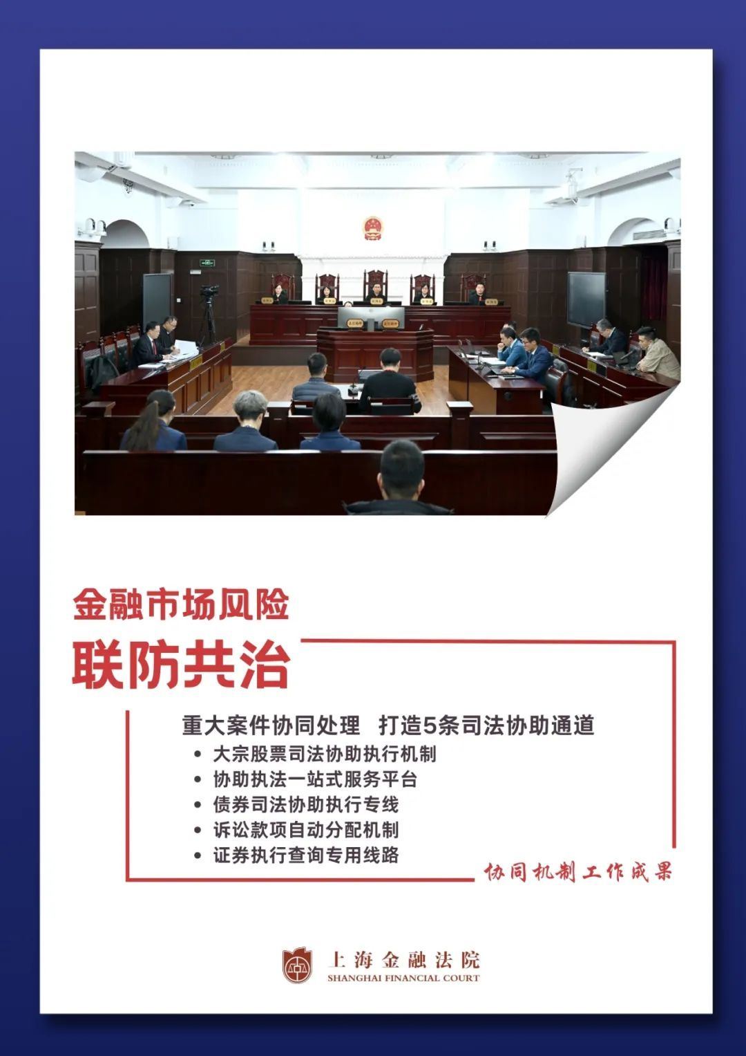 去年3月,上海金融法院在全国率先建立协同机制(点击查看详情),首批10家金融监管部门、重要金融基础设施参与规则会签,共同构建金融市场协同善治新格局。