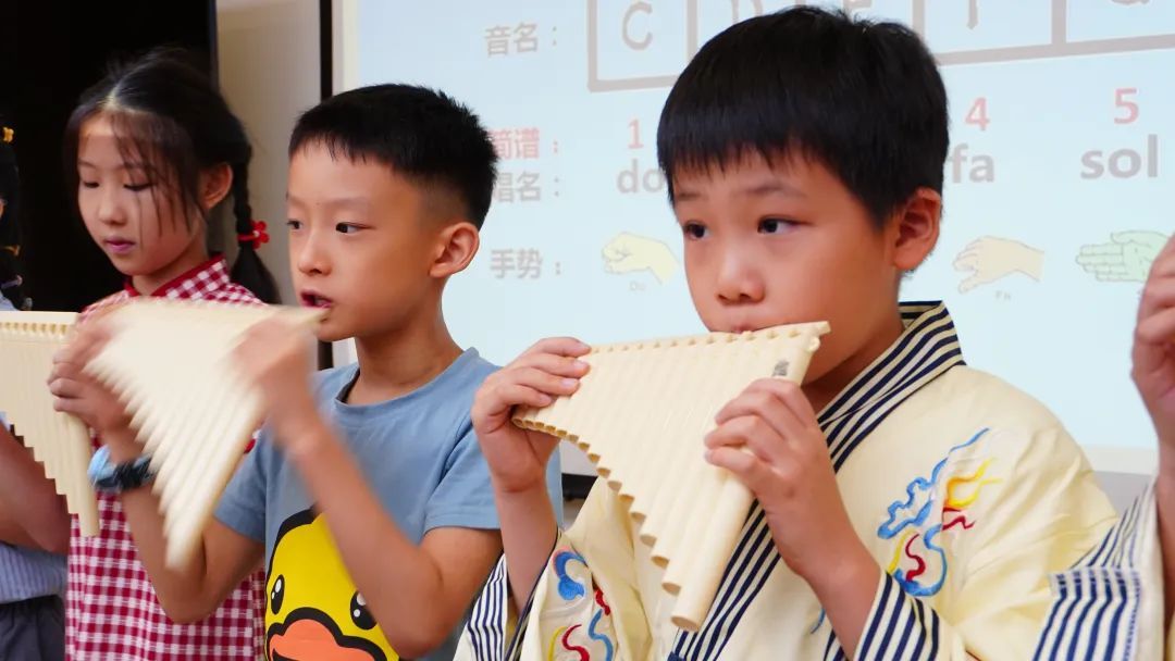 在陈杰的亲自示范和悉心指导下,孩子们跃跃欲试,纷纷手持排箫尝试着吹奏,在深邃悠扬的音色中,更感受排箫的艺术美。