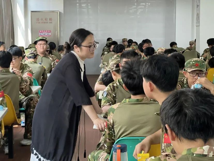 8月恰逢上海高温天气,部分学子是第一次离开舒适的家,来到全寄宿制的校园生活。酷暑之下操场上的温度达到了40℃+,于是早晨室外训练,中午教学楼内训练,一天伴随着5顿餐食水饮补给,学子们在身心训练的同时,也感受到关爱。