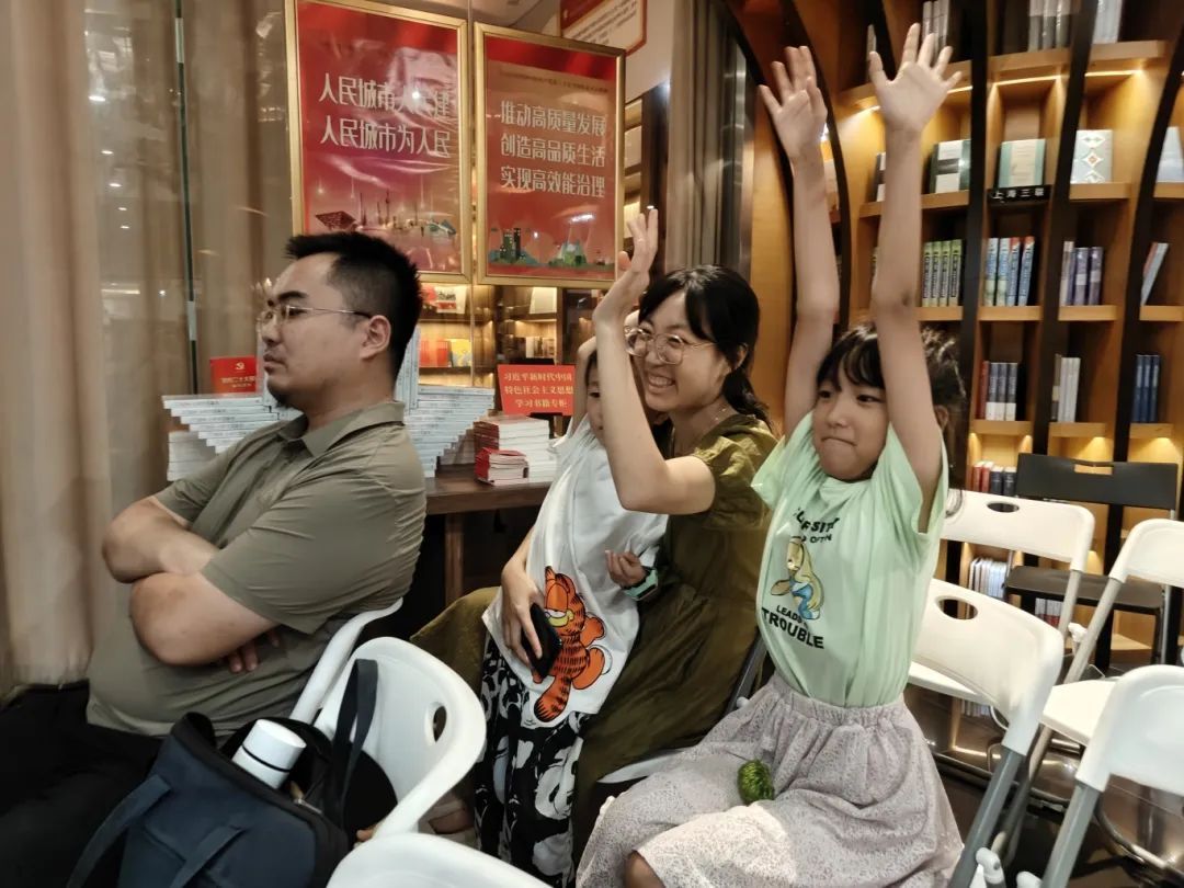 一部好的文学作品要成为脍炙人口的音频作品,同样离不开声音的演绎者。和李铁共同参加见面会的“呆瓜叔叔”是喜马拉雅儿童频道《大宋群英传》的主播。现场不少孩子们都是他的小听众。他讲述了和李铁共同创作这部音频作品的幕后故事,并现场为大家表演了一段。呆瓜叔叔活灵活现、声情并茂的演绎让人有身临其境之感,让小朋友们格外开心。有小朋友现场提问,“穆桂英是呆瓜叔叔配的吗?”呆瓜叔叔很肯定地说是的,并请李铁现场找了一段有佘太君和穆桂英的内容,给孩子们表演了一把主播通过改变语调、声线、情绪,一人分饰多角的声音魔法。两位老师从自身的专业出发,从写作、配音等方面给了大小朋友们很多有益的建议。