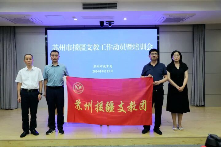 8月15日,苏州市第三批“组团式”援疆支教工作动员暨培训会在苏州市教师发展学院举行。49名教师即将出发前往克州和伊犁,续写教育援疆新篇章。苏州第三批“组团式”援疆支教团共有正高级教师2人、高级教师30人、中级教师17人;省特级教师1人、省教学名师1人、市名教师4人、市学科带头人6人。