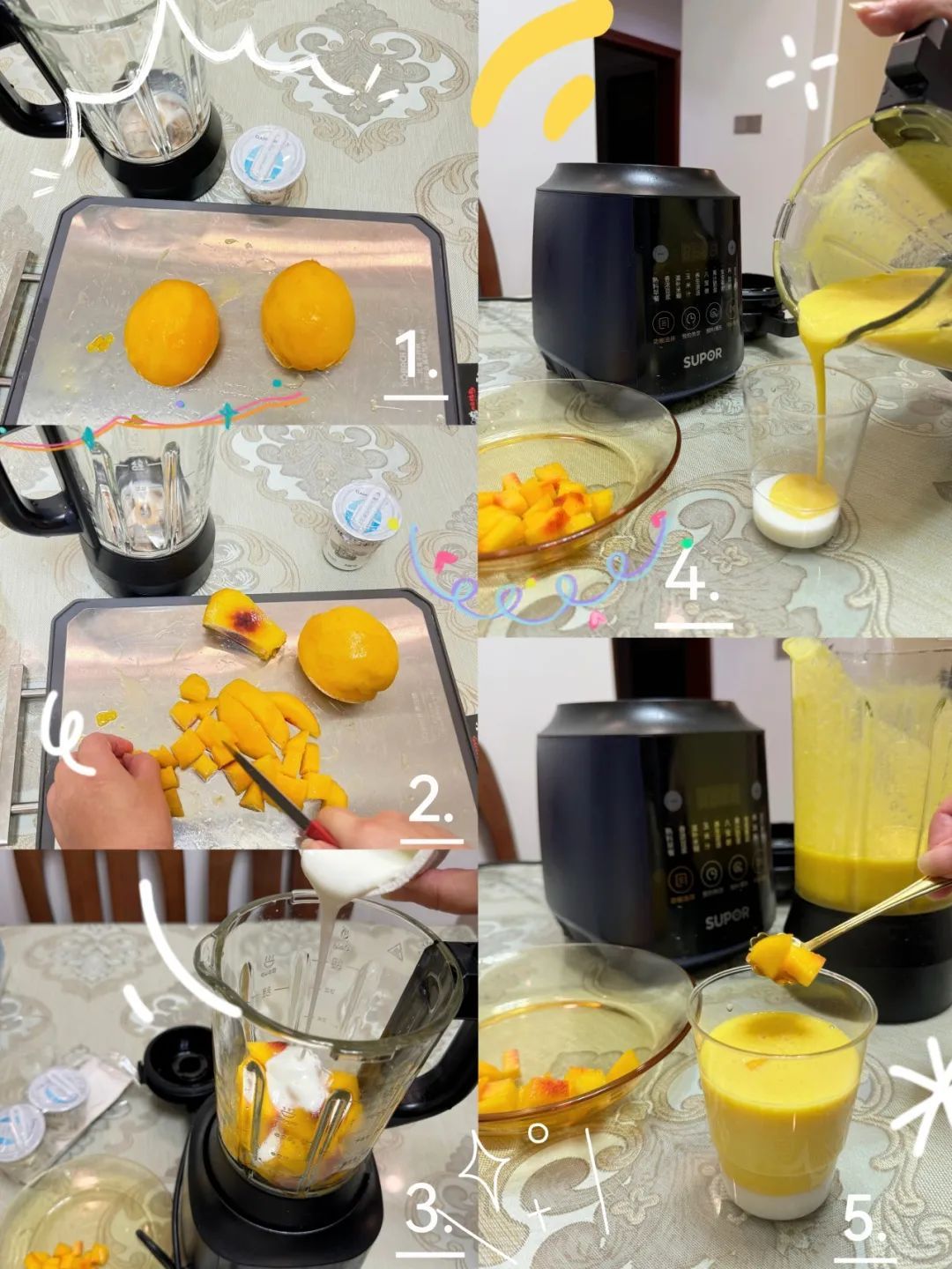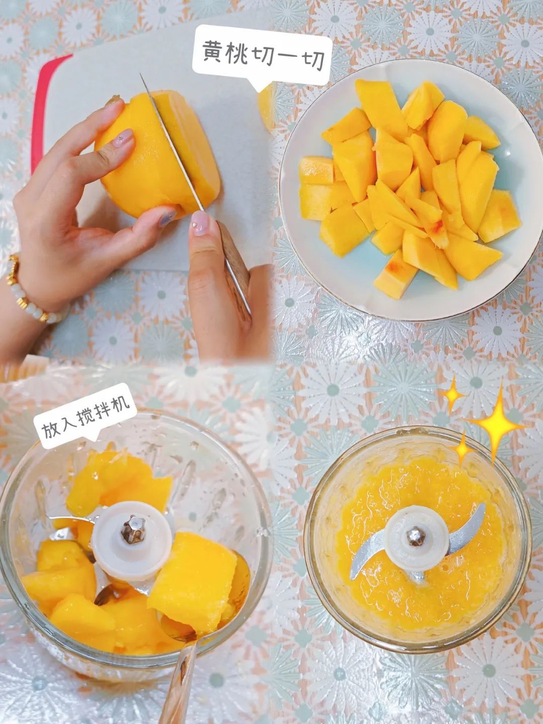 准备黄桃1~2个、酸奶2盒。先将黄桃去皮切成小块,留一点切丁作为备用。然后把酸奶倒入杯中留底,将切好的黄桃放入搅拌机中,倒入酸奶,搅拌机调成奶昔模式,喜欢奶味浓的,也可以放入少量牛奶。最后,将打好的黄桃奶昔放入杯中,留出的黄桃切丁平铺在奶昔表面。一份健康又美味的黄桃酸奶奶昔就做好啦!冰镇后味道更好喝!