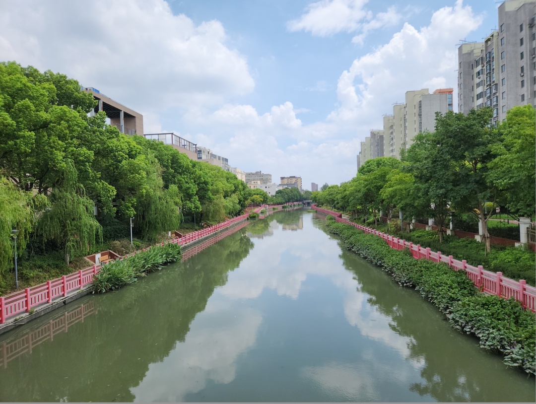 蒲汇塘是一条市管河道,流经虹桥镇镇域内长1.6公里,河面宽26米,常水位在2.5—2.8米之间。近年来,通过河道整治和绿廊贯通建设,虹桥镇将蒲汇塘两侧的住宅区、健身绿道、公园和商业楼宇巧妙地连接起来,成为居民们锻炼、散步和休憩的场所,深受居民欢迎。尤其是万源路至莲花路段,因毗邻虹溪公园,时常可见居民散步、慢跑,也成为周边居民的“遛娃宝地”。“出于安全方面的考虑,蒲汇塘河道周边是设有栏杆的,高度为1.1米,栏杆上也相应设置了安全警示牌。此外,合川路西侧、莲花路西侧已有2个涉水救助点,分别由河岸边上的楼宇物业负责管理。在日常巡河中,工作人员看到有小朋友站在栏杆横档上向河道内张望,也会及时进行劝阻。”虹桥镇水务条线相关负责同志表示。
