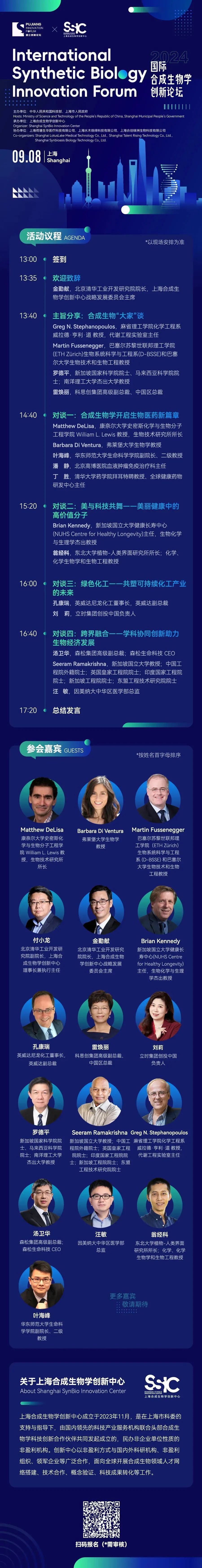 数位国际合成生物学领域的顶尖学者与业界领袖将参与本次论坛活动: