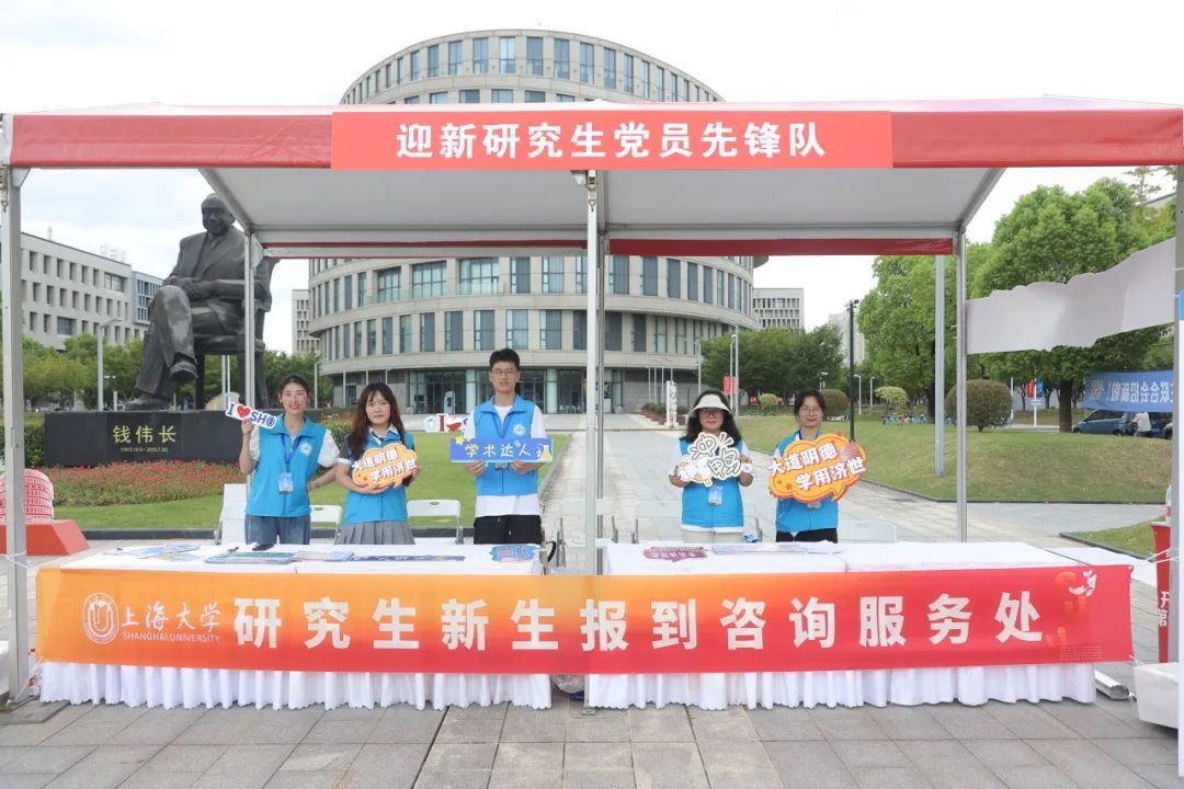 在学校的周密部署和精心组织下,三校区共设置了7个迎新服务点,来自30个研究生培养单位的500余名研究生志愿者参与迎新工作,志愿服务总时长约2800小时。研究生党员充分发挥党员先锋模范作用,带头参与迎新报到服务工作,组成迎新研究生党员先锋队,用热情的笑容、周到的服务,护送新同学顺利完成在上大的第一次“打卡”。