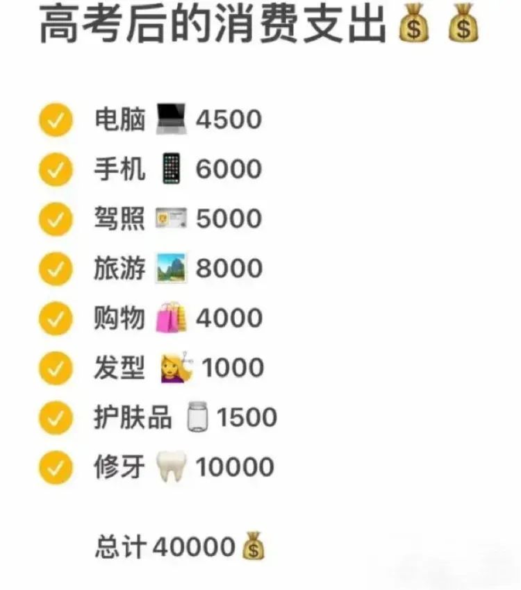 孩子高考结束后的暑期消费账单