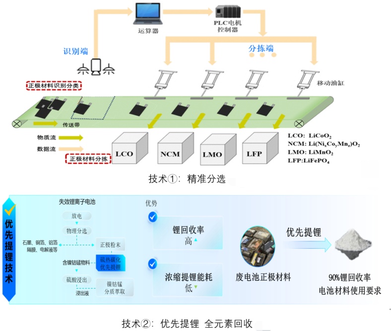 1. 精准分选:相比于人工分类误差大的缺点,该技术运用数字信号处理方法,对图像和光谱数据进行特征提取,并构建多分类模型,从而快速、智能、高效的识别和精准分选不同类型锂电池正极材料,准确率高、速度快。