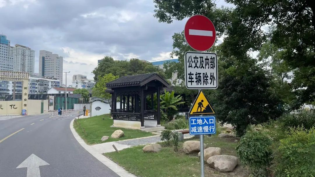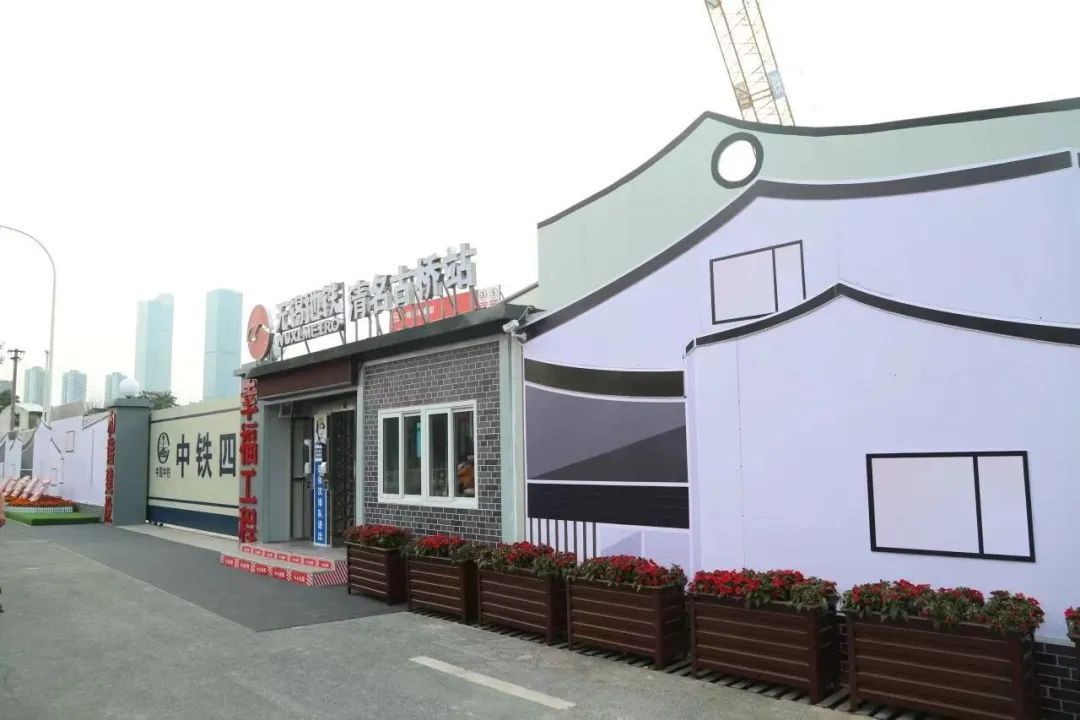 5号线清名古桥站位于古运河沿线,选取周围古巷、民居、古窑、石桥、流水元素制作剪影,装饰车站围挡,运河风韵油然而生,工地一旁辟出的小花园,也成为附近居民休闲散步的好地方;