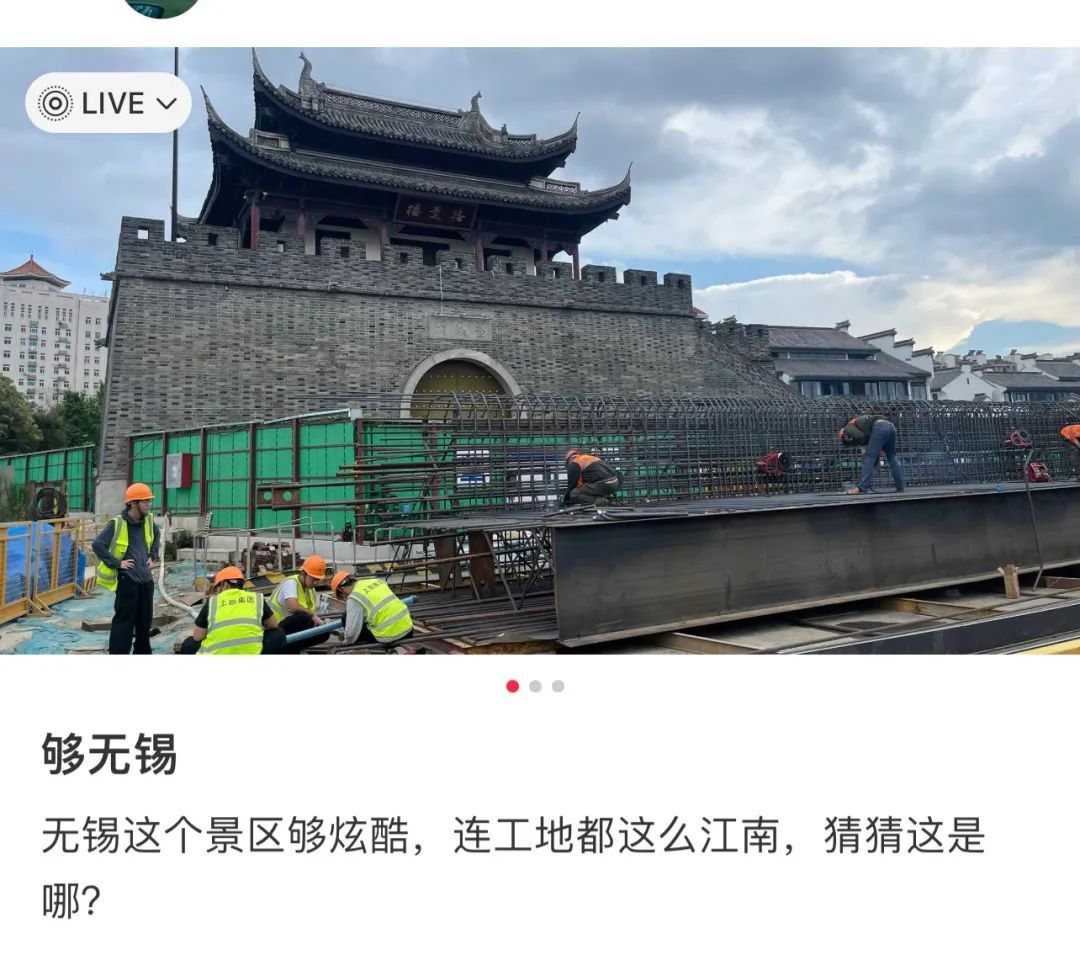 “这个景点够无锡,连工地都这么‘江南’,猜猜这是哪儿?”近日,某社交平台上一条外地游客的分享,拍出了无锡地铁工地的最佳“颜值”。