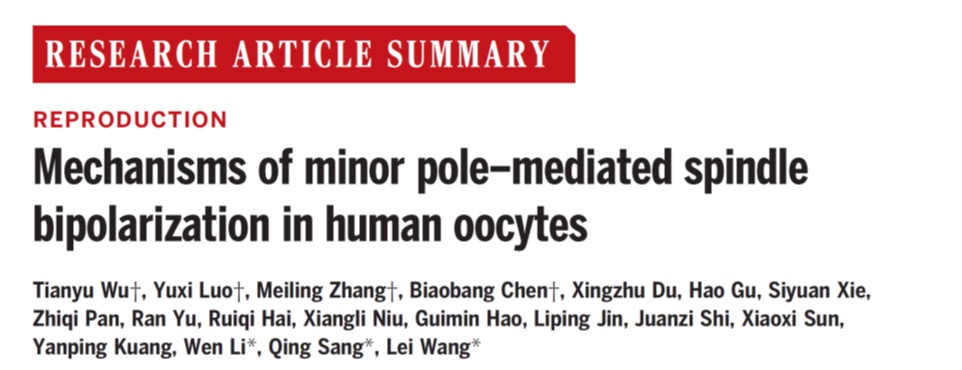 成果以“Mechanisms of minor pole-mediated spindle bipolarization in human oocytes”为题发表在最新一期的《科学》杂志(Science)。