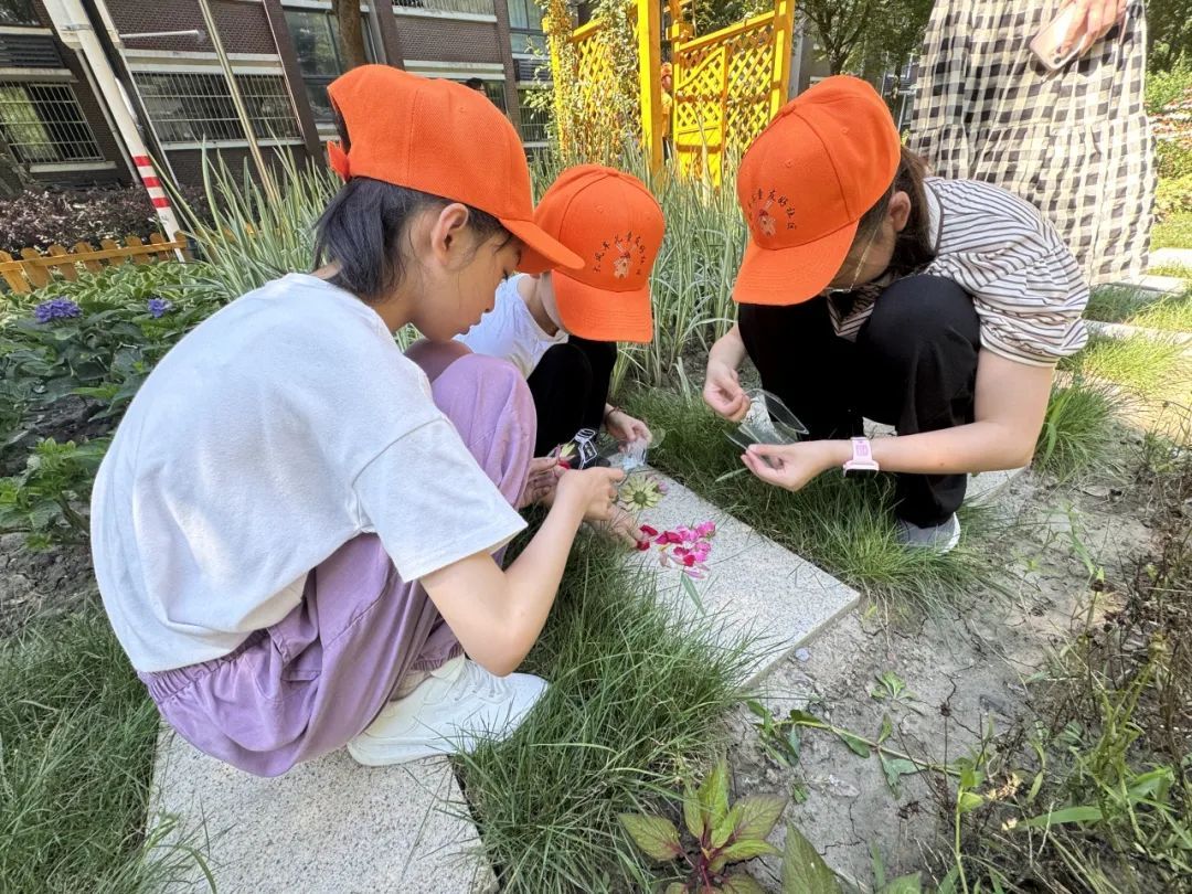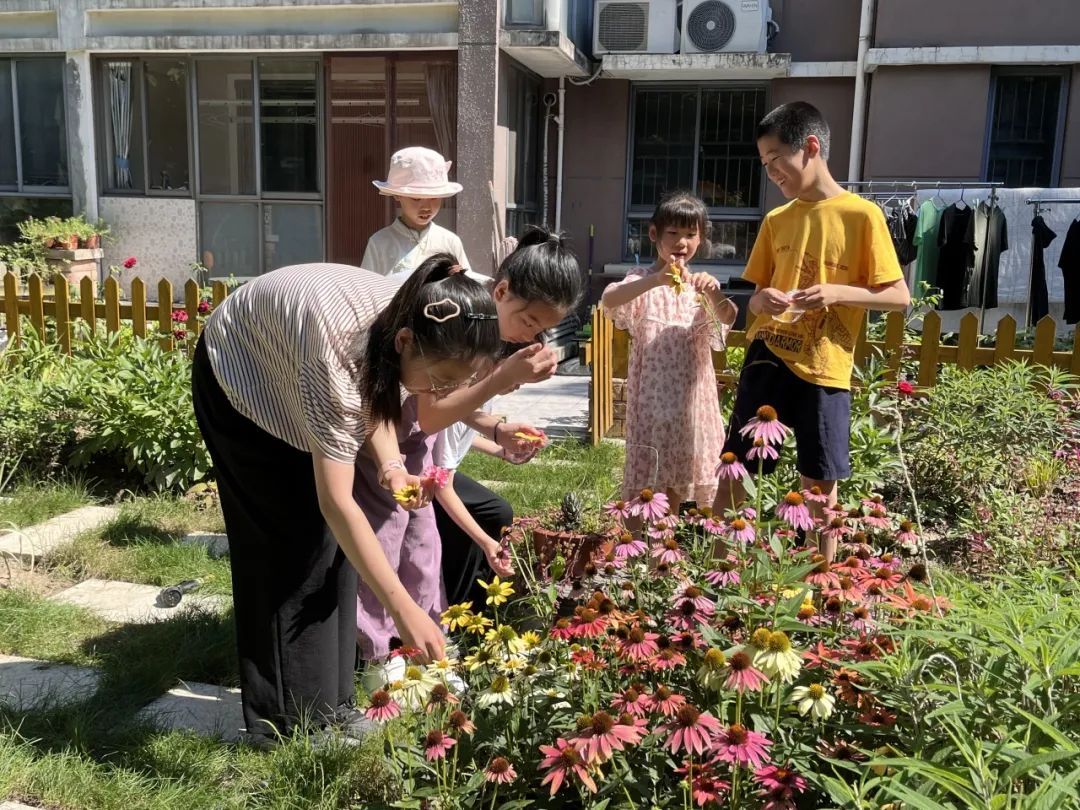 在社区内的共建花园“知时田”里,与弘文学校共同组织辖区内童言议事会成员开展了“将夏天收藏进书本里”活动。