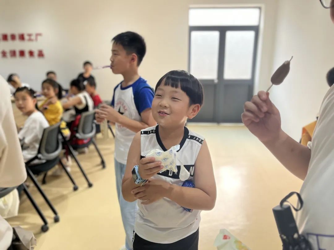 最后,来到了期待已久的冰激凌品尝环节,孩子们吃到了益民食品厂提供的美味冰激凌,甜甜的冰激凌融化在唇齿之间,冰冰凉凉的口感仿佛让一整个夏天都清爽了起来,孩子们的脸上都露出了欢乐的笑容。