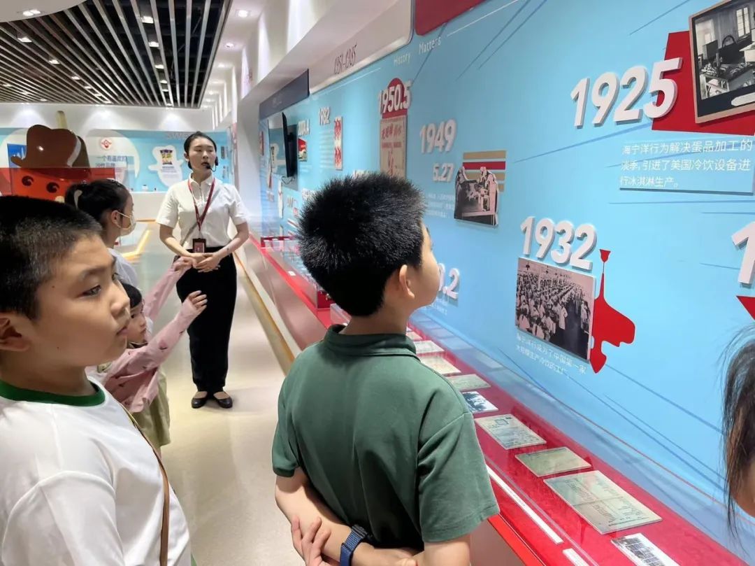 “对话国货品牌 探索甜蜜之旅”暑期社会实践活动中,孩子们来到上海益民食品一厂参观,探索光明乳业百年品牌背后的故事,寻找属于夏天的快乐。