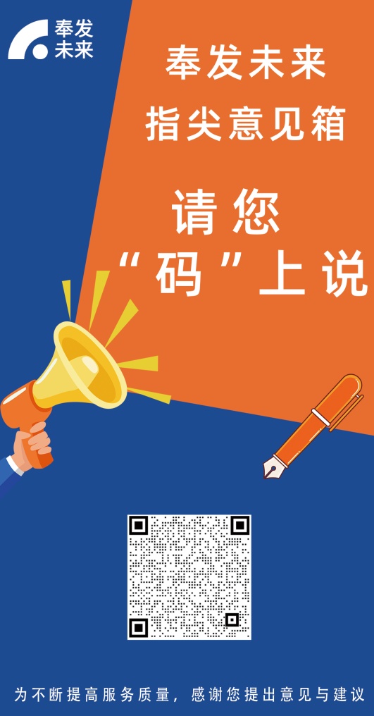 您可在租赁中心或各单元楼下使用“奉发未来指尖意见箱”进行扫码反馈您的意见与建议。
