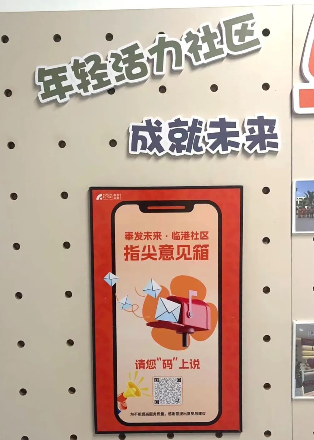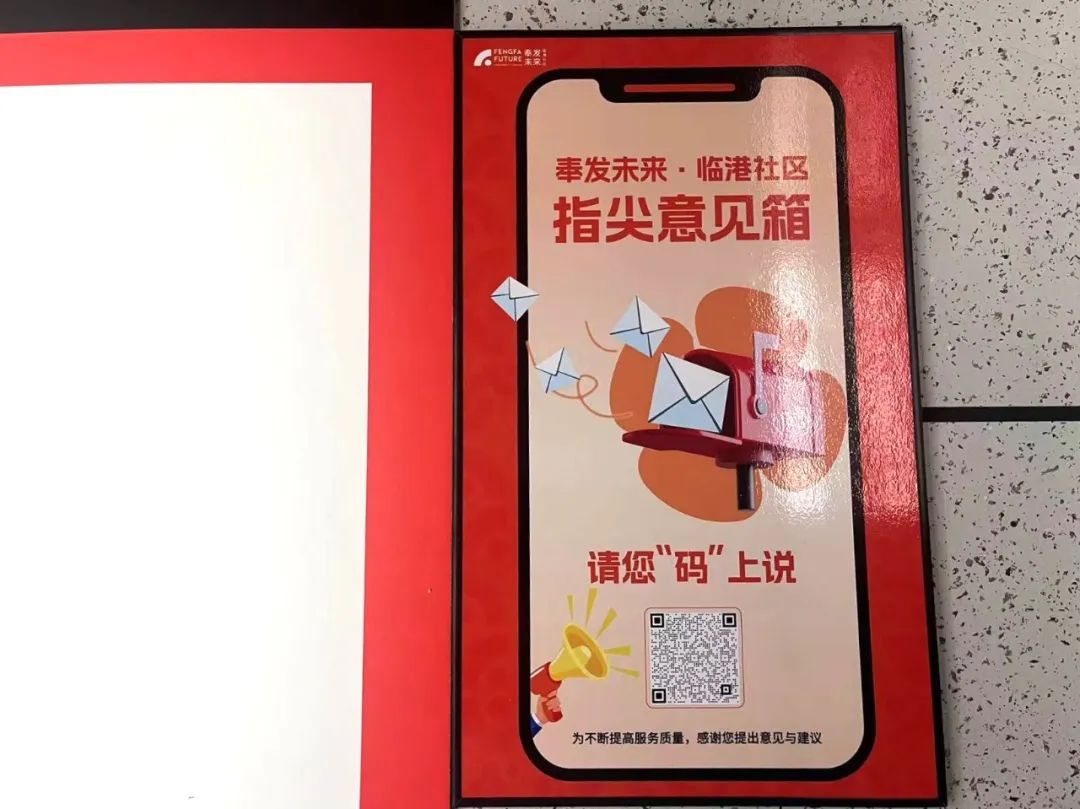 当前奉发未来各项目顺利推进,为了更好、更直接地聆听您的声音,进一步提升我们的服务水平,创造更舒适的居住环境,我们特别推出了“指尖意见箱”。只需扫一扫二维码,即可轻松反馈您的宝贵意见和建议!邀请您参与到社区建设中来,一起携手共创美好家园!