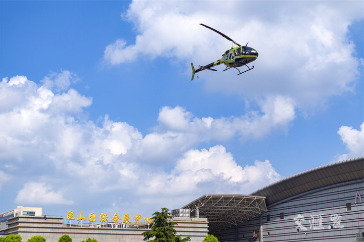 8月18日,昆山城市航站楼,昆山至上海浦东机场(KVS-PVG)低空空中载客航线首航,昆山城市航站楼成为全国首家开通跨省“空空联运”项目的城市航站楼。本次执飞的是美国贝尔公司生产的BELL505单发四座轻型直升机,在市场推广阶段,单程执飞价格按1600元/位、1800元/位设定,乘客仅需30分钟,即可从昆山城市航站楼直抵浦东机场。袁新宇摄 视觉江苏网供图