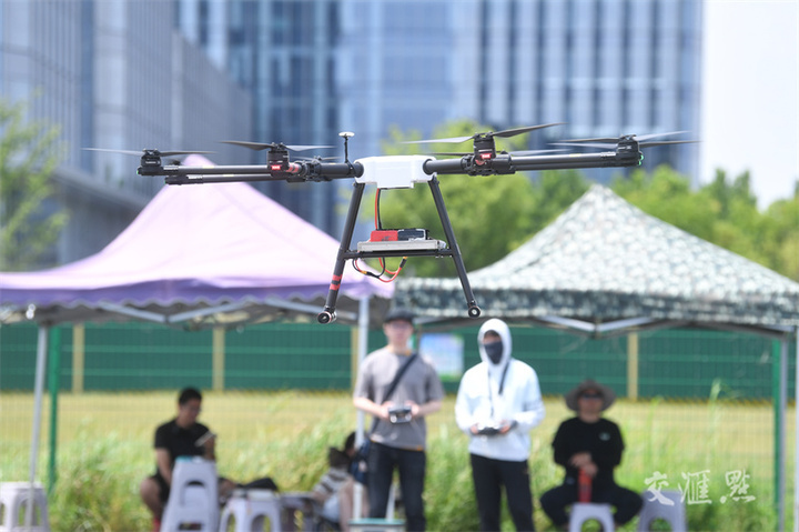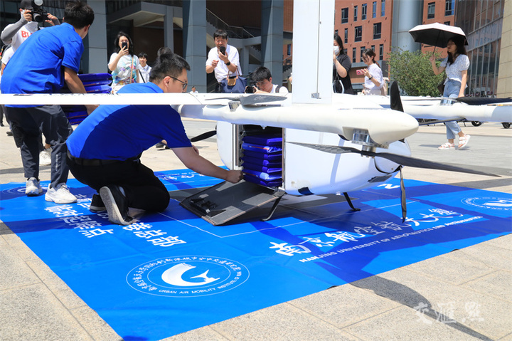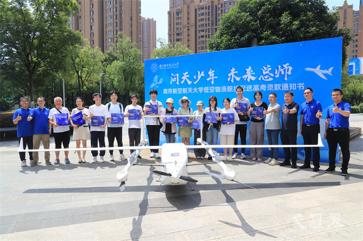 7月23日,一架无人机从南航明故宫校区起飞,依托南航此前开通的南航—南航国际创新港低空物流航线,历时25分钟,飞越40公里,配送2024级本科新生录取通知书。据了解,此次无人机运送首批录取通知书的专属航线,是南航明故宫校区到国际创新港总部低空物流航线,通过平台生成精准的起降时刻和精密的飞行轨迹,保障无人机自动起降,实时监控飞行状态,全程保障安全高效运行,实现了精密共享仪器、重要文件材料等跨校区高效运输。新华日报·交汇点记者 刘莉摄